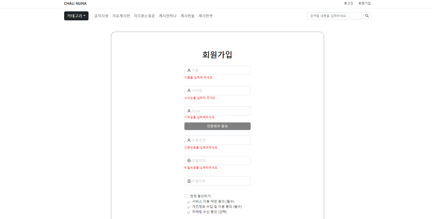 인증번호 발송