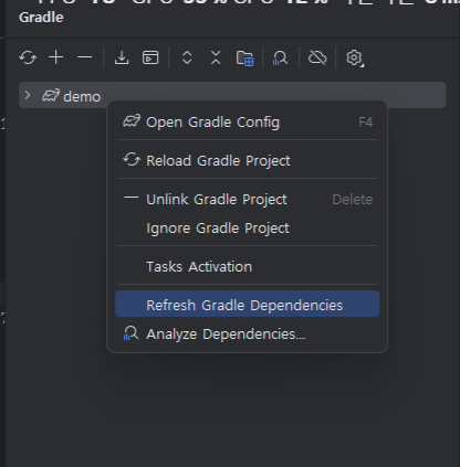 내가 실행하고자 하는 프로젝트를 우클릭하고, [Refresh Gradle Dependencies] 를 클릭한다.