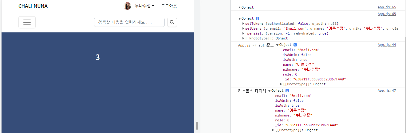 를 작성해 Redux에 정보가 제대로 저장되었는지도 출력해 보았다.