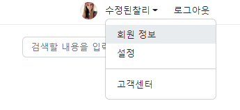 Topbar의 닉네임을 클릭하면 회원 정보를 누를 수 있는 메뉴가 뜬다.