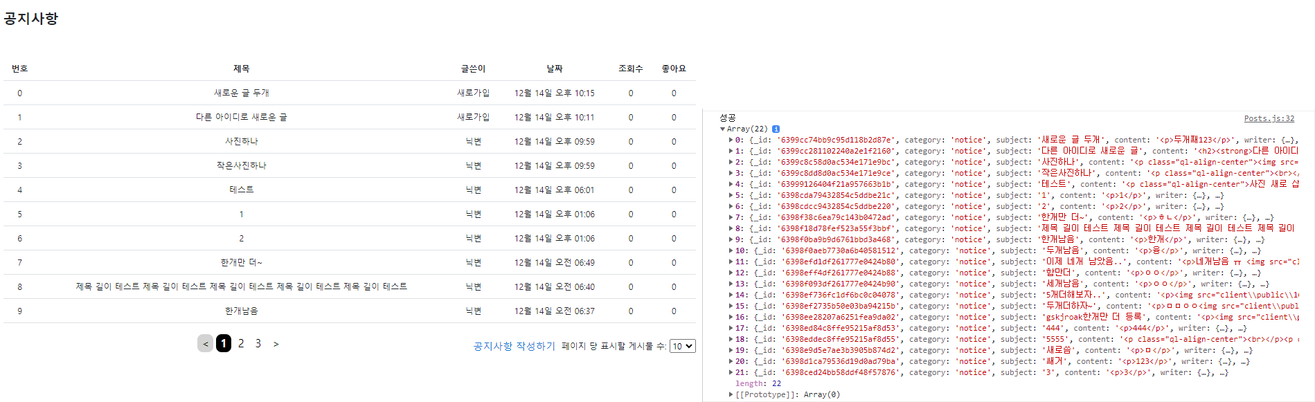 먼저 글 목록을 불러오는 api를 작성하였다.