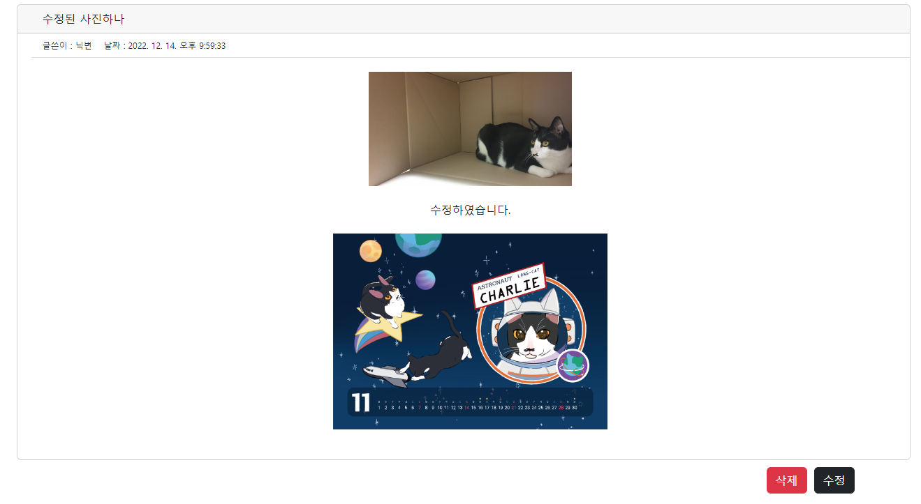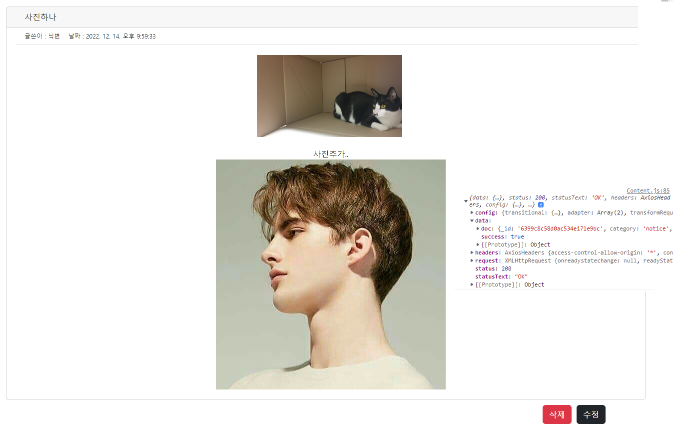 ▶ 3. 백엔드로 수정한 내용들을 전달하여, 게시글을 수정하였다.