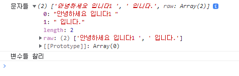 taggedLiteral`안녕하세요 ${변수} 입니다.`