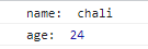 name에는 'chali'가, age 에는 24가 들어가게 된다. 마찬가지로 default값을 줄 수도 있다.