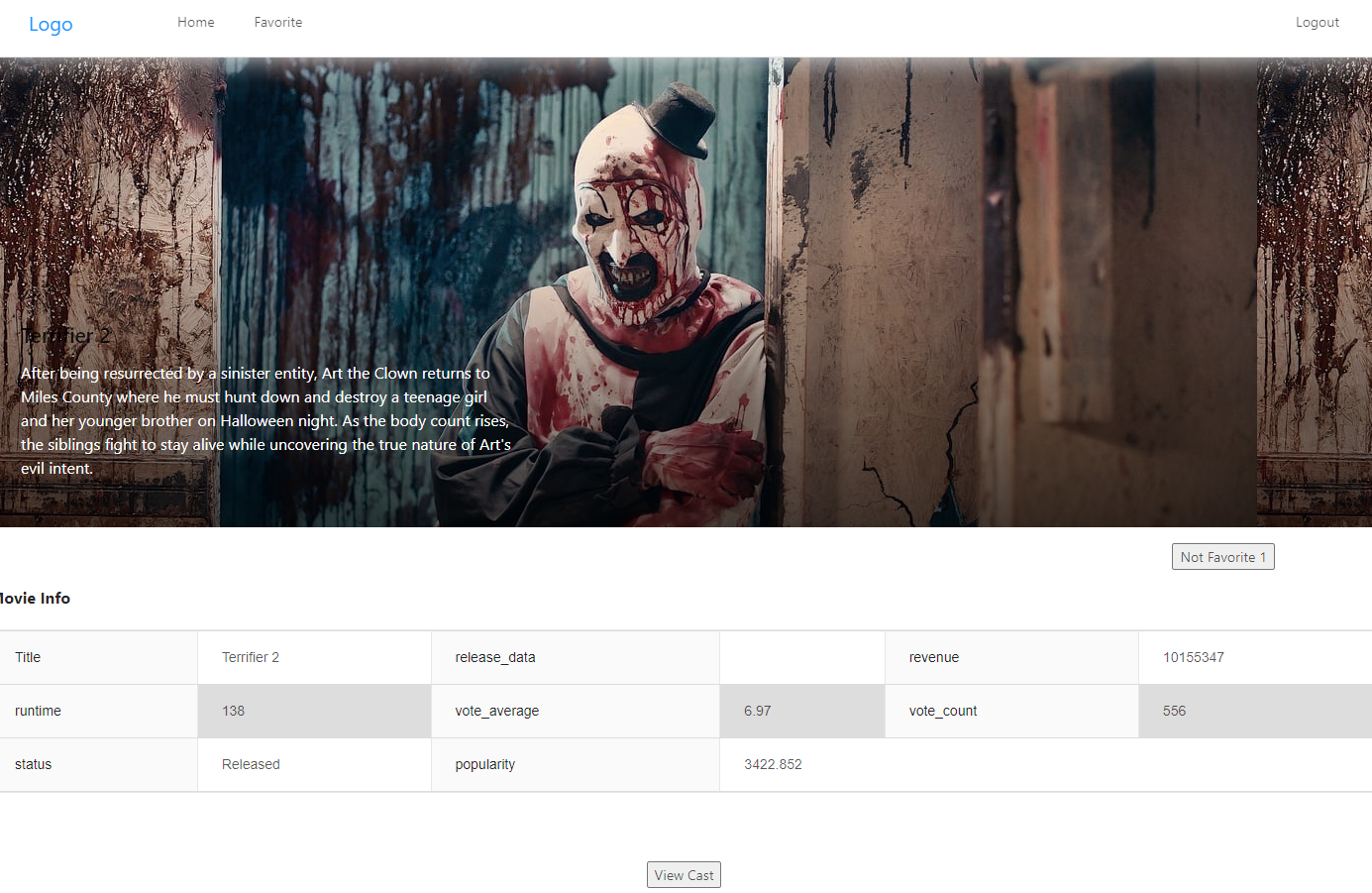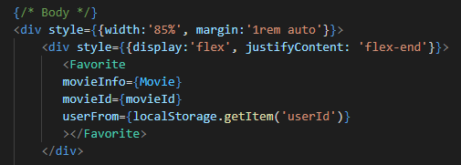 ▶ Favorite(좋아요) 버튼으로 로그인 한 유저에게 영화 좋아요 리스트 저장 기능 제공, 더블클릭 시 리스트에서 제거
