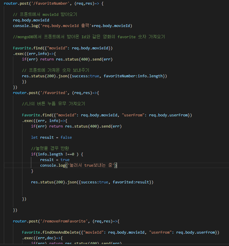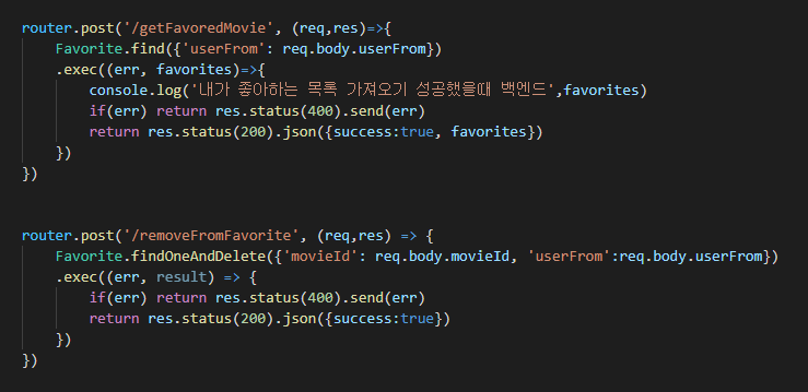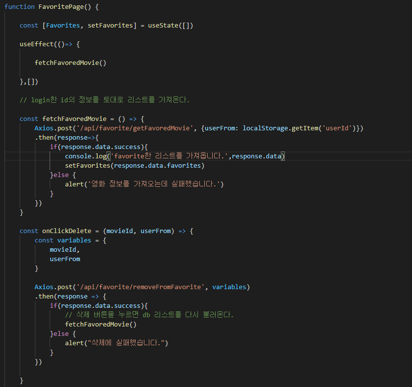 ▶ 로그인 한 유저에게 해당되는 favorite movies 리스트를 mongoDB로부터 받아와 화면에 출력