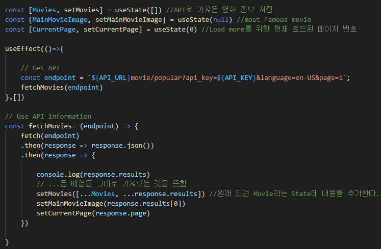 ▶ TheMovie API 사용해 웹사이트 이용 현재 기준으로 가장 인기있는 영화 리스트를 불러오기