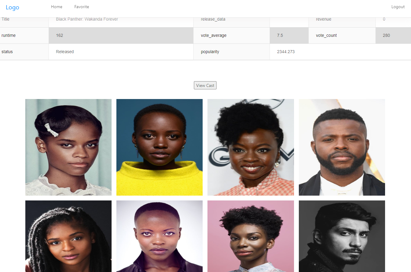 ▶ View Cast 버튼 클릭 시 캐스팅 된 인물 정보 제공
