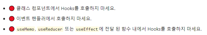 - ✅ 함수 컴포넌트 본문의 최상위 레벨에서 호출하세요.
